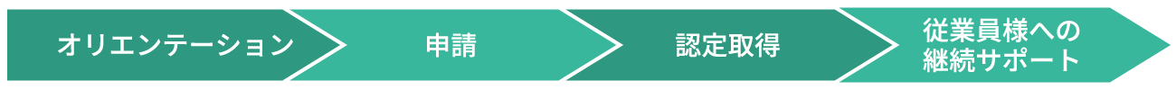 申請手続き、従業員様への心身のサポート、一部コスト軽減が出来る支援を一気通貫でサポート。