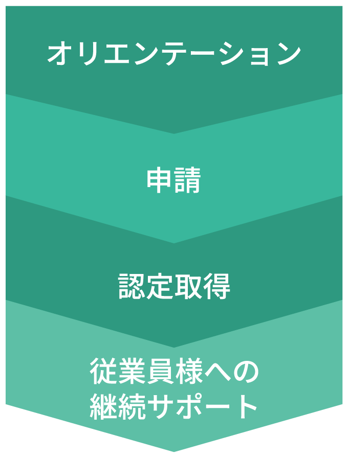認定取得に向けてコンサルタントが流れをご説明いたします。